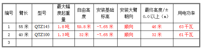 (4)数量:本工程共设2台塔吊,其中1台QTZ145(6018),1台QTZ100(5515),塔吊租赁招标数量及技术参数如下: