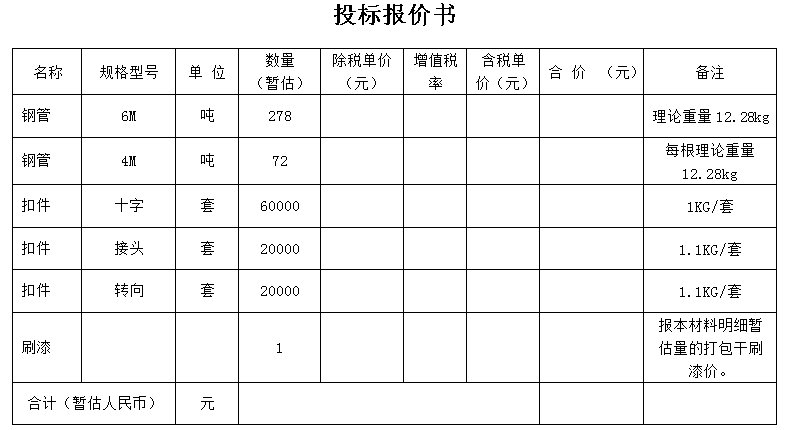 (4)数量:暂估钢管350 吨、扣件100000套。