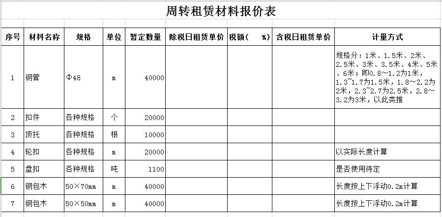 1、招标货物名称:钢管、扣件、顶托。