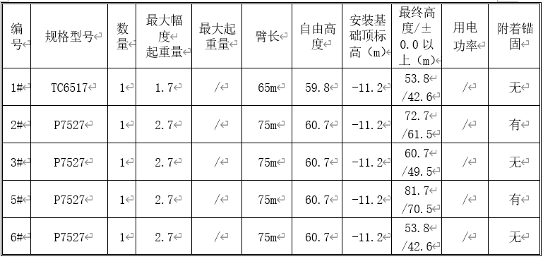 b、2#、#3、5#、6#楼塔吊要求有效臂长75米,在满足最小吊重2.5吨要求;