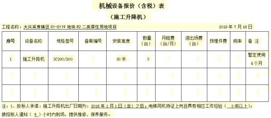 北京城建八建设发展有限责任公司就大兴采育镇区01-0119地块R2二类居住用地项目目(1#住宅楼等28项)1-7#住宅楼、 25#配套服务设施及配电室、1#人防出入口、2#人防出入口、地下车库北区项目将于2019年9月20日通过兰格云商平台进行施工升降机租赁招采,有供货实力的客户请登 http://jc.lange360.com 查看项目详情并及时联系兰格云商办理相关手续,获取投标资格。