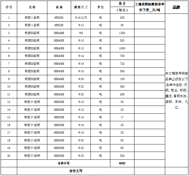 三、招标内容:工程建设所需钢筋,本次采购招标总量约为6252吨。