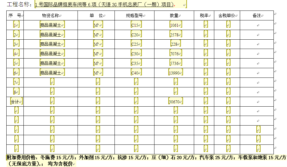 (3)供应地点:1号国际品牌组装车间等6项(天语3G手机总装厂(一期)项目)施工现场
