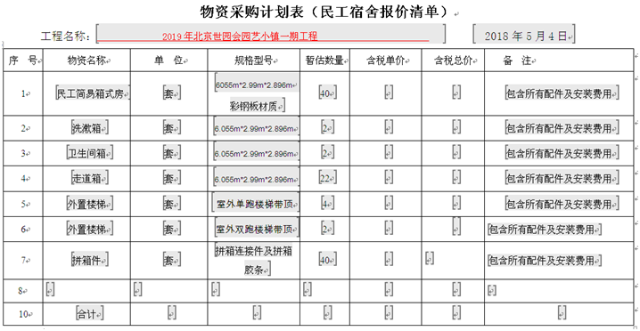 (1)招标货物名称:简易箱式房、箱式活动房
