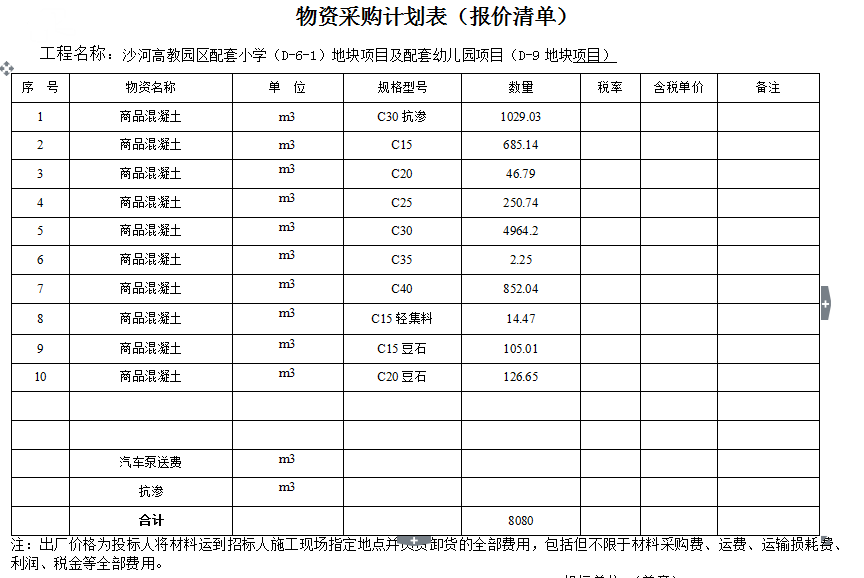 (4)数 量:(暂估8080m3,实际方量以结算为准)。