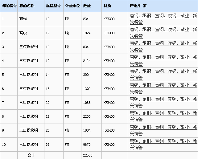 (4)要求品牌:唐钢、承钢、宣钢、敬业、凌钢、新兴铸管