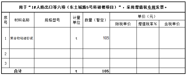 北京城建集团有限责任公司就1#人防出口等六项(东土城路5号科研楼项目)将于2018年6月15日通过兰格云商集采平台进行聚合物粘结砂浆招标,有供货实力的客户请登 jc.lange360.com 查看项目详情并及时联系兰格云商办理相关手续,获取投标资格。