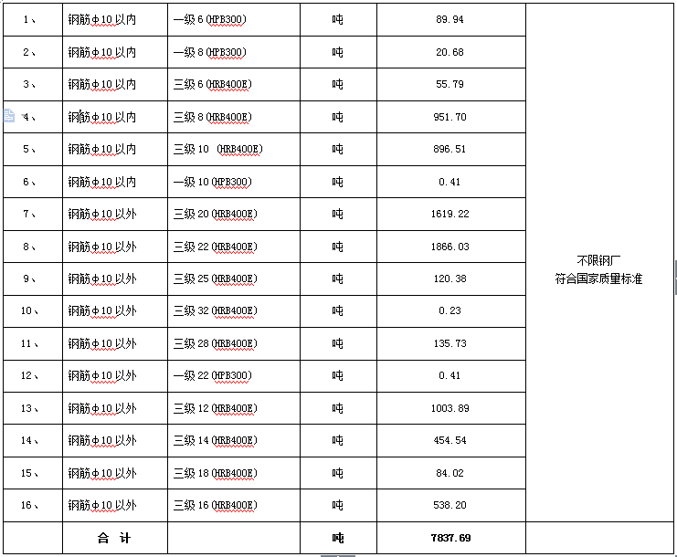 (4)要求品牌:不限钢厂,符合国家质量标准