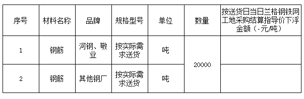 六、报价方式:含税落地价。按送货日当日兰格钢铁网工地采购结算指导价下浮方式报价。