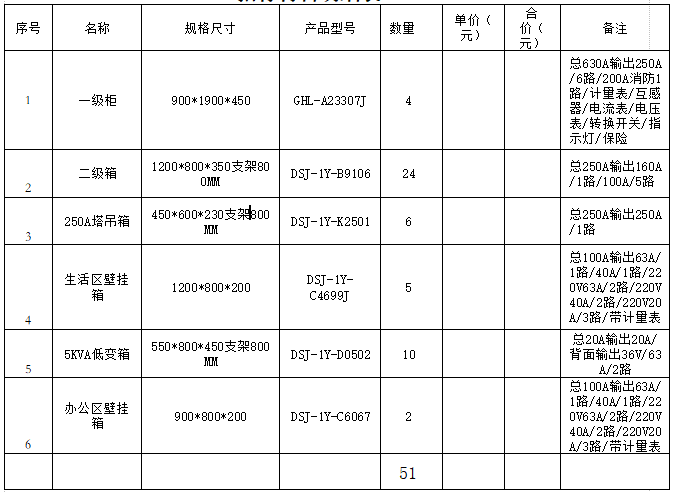 标 的 物:临时配电箱(见《招标材料明细表》)