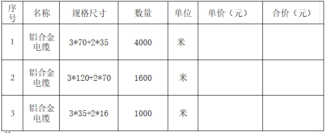 标 的 物:临电用临时电缆(见《招标材料明细表》)