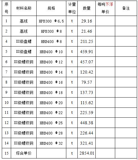 三、报价方式:按2019年8月14日的当日上午兰格网北京地区工地采购结算指导价格表相应规格的河钢价格下浮报价。