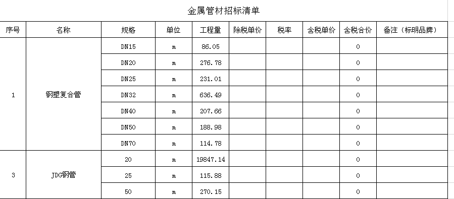 (3)数量:按照施工现场实际验收签认数量为结算的工程量,招标方将指定专人签收;管材数量为暂定量,招标方有权根据所承接任务量进行调整。