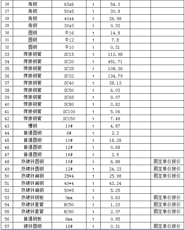 (6)计量原则:热镀锌管、焊接钢管、型钢检尺