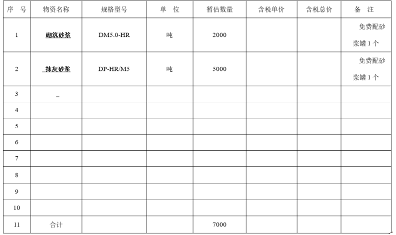 (1)招标货物名称:干混砂浆(散装)