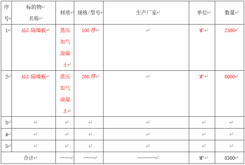 (1)招标货物名称:ALC隔墙板