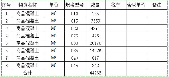 (1)招标货物名称:商品混凝土